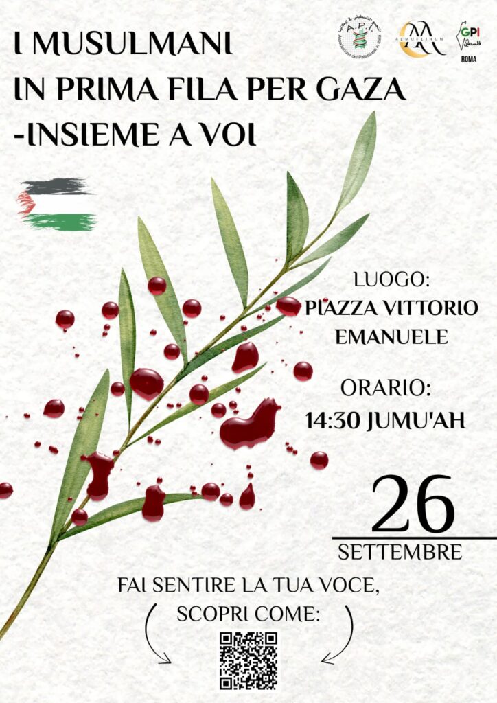PS: Alle 14:30 ci sarà una preghiera comunitaria prima di iniziare la marcia. Se non sei musulmano, non ti preoccupare: non ti chiediamo di pregare, ma ti chiediamo di stare con noi, perché questa lotta è di tutti: contro l’islamofobia, contro l’ingiustizia e per la Palestina.